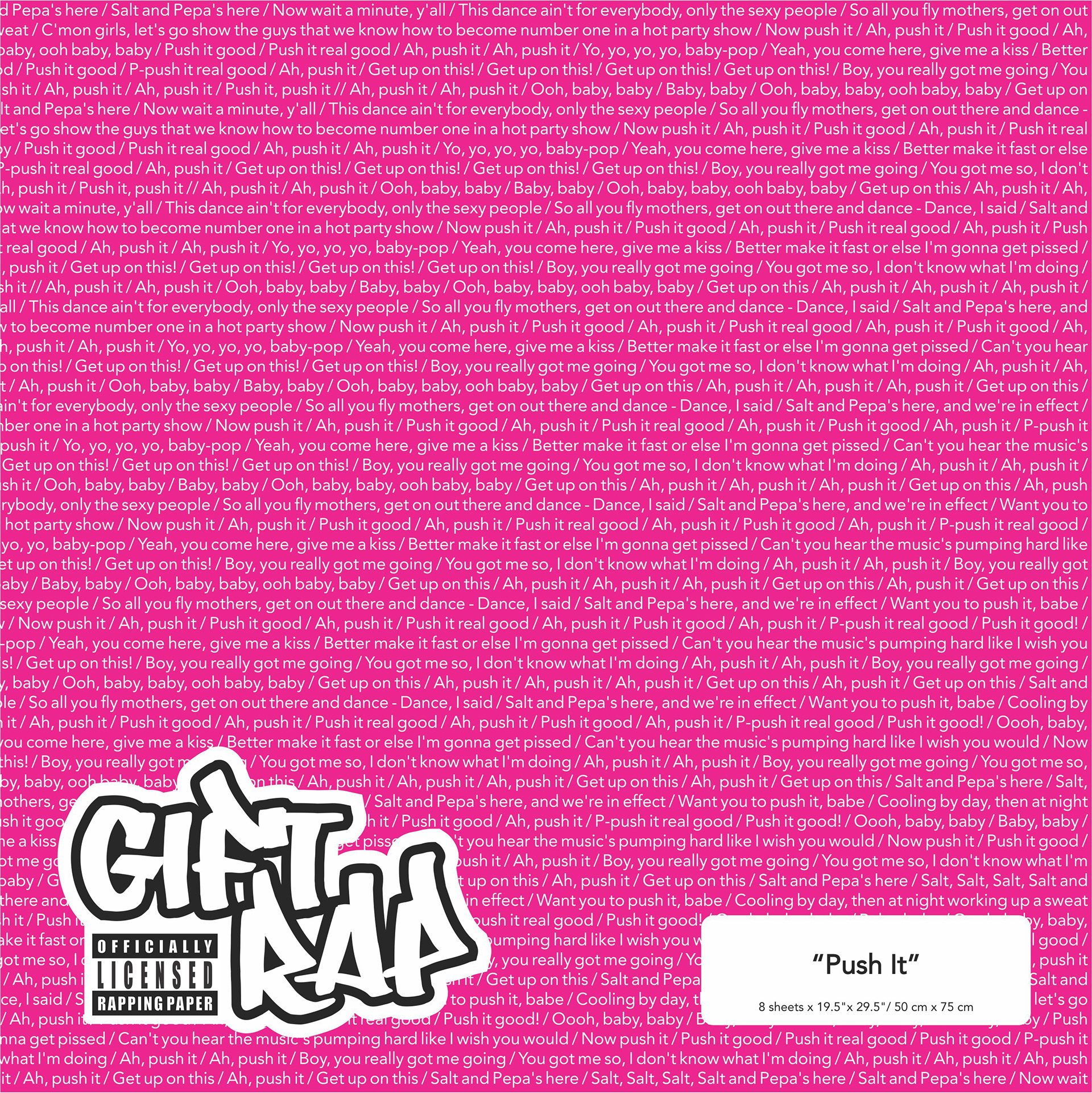 Premium quality, flat folded, wrapping paper featuring the officially licensed lyrics to "Push It".