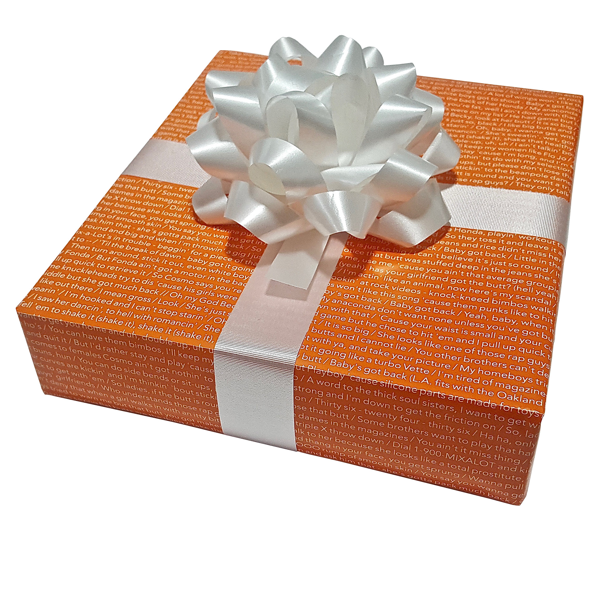 Premium quality, flat folded, wrapping paper featuring the officially licensed lyrics to "Baby Got Back".