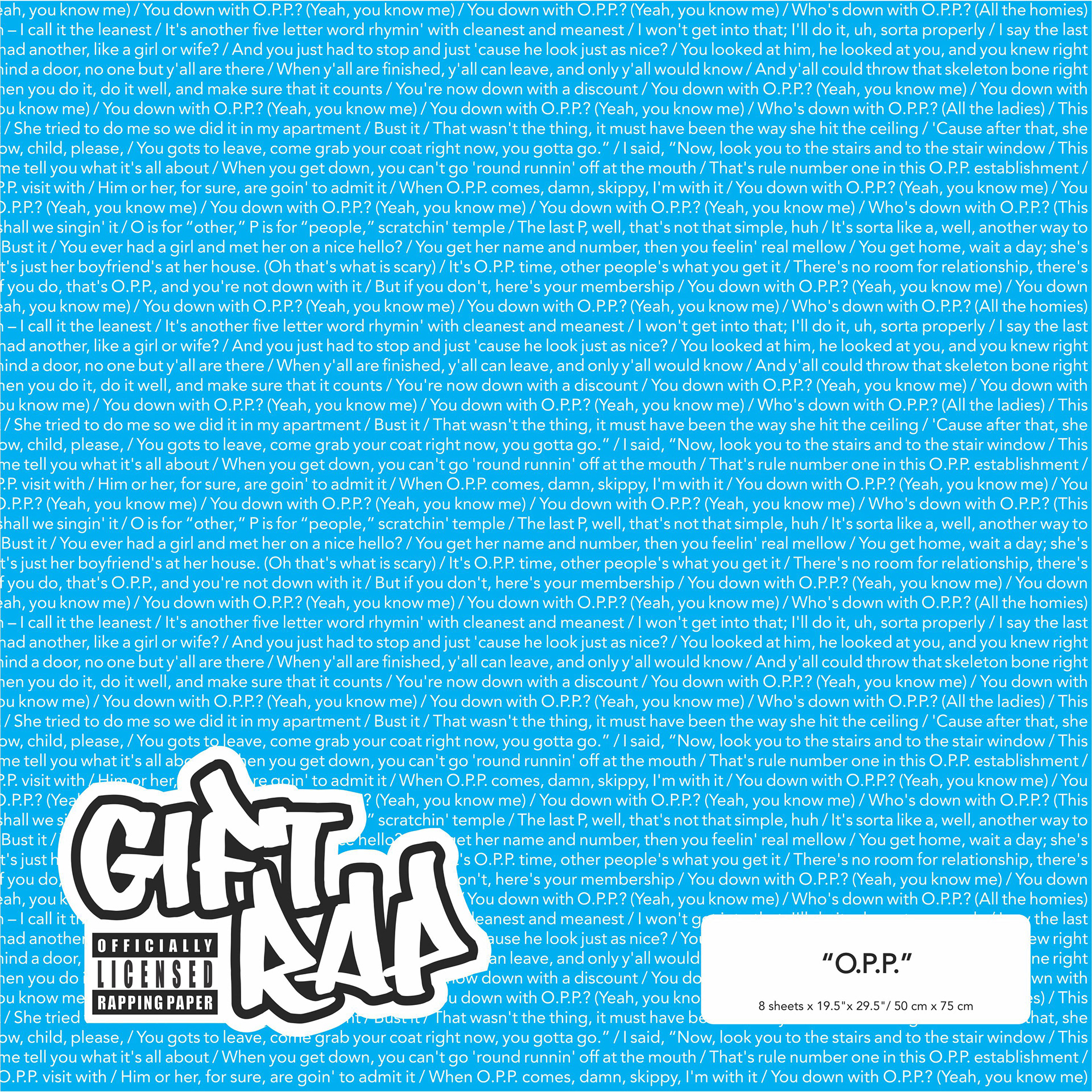 Premium quality, flat folded, wrapping paper featuring the officially licensed lyrics to "O.P.P.".